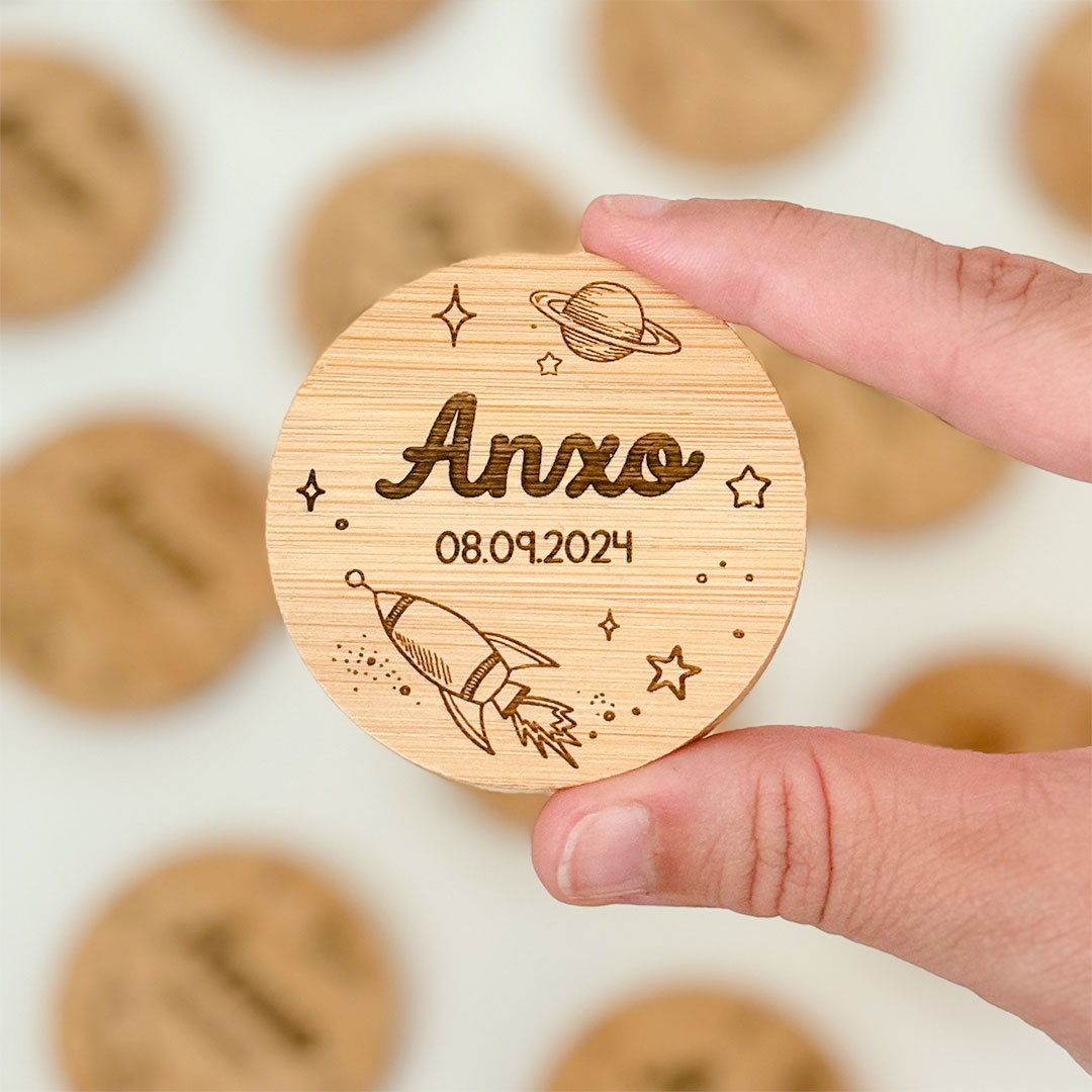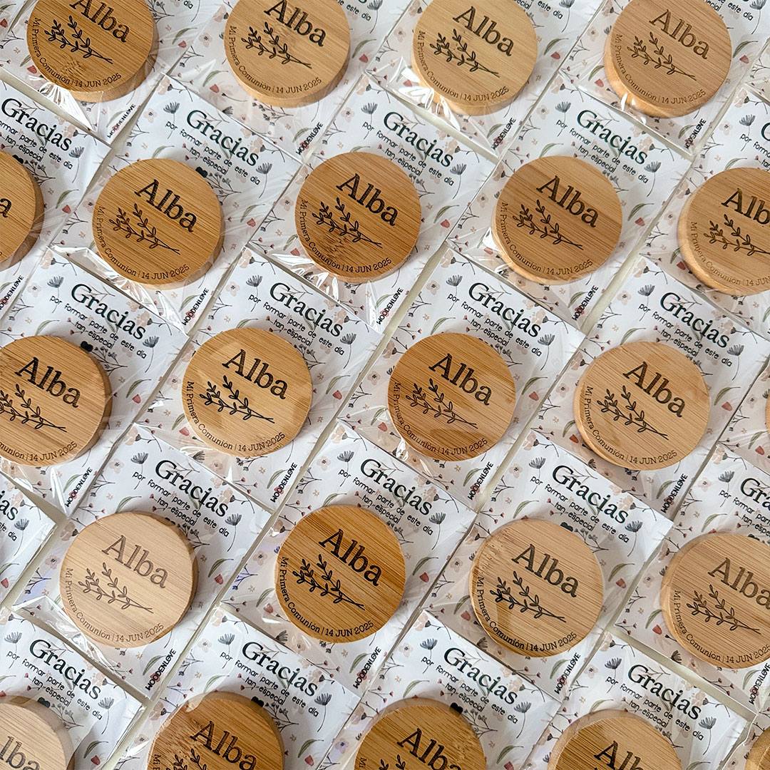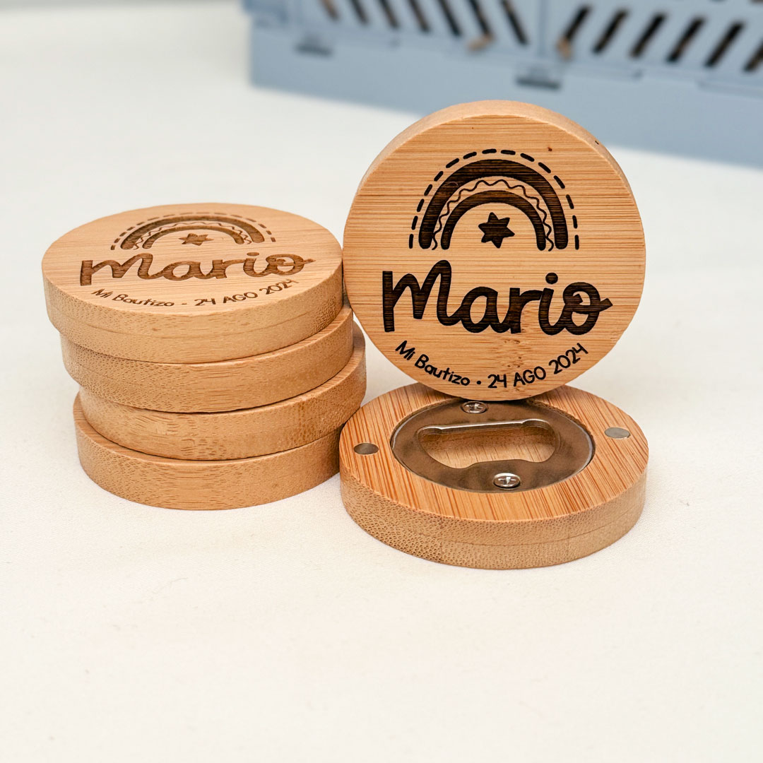 Nuestros abridores de madera personalizados con imán no solo son prácticos, sino que también añaden un toque de elegancia y originalidad a cualquier evento. Ideal para bodas, cumpleaños, bautizos, comuniones, o cualquier ocasión en la que desees impresionar con un detalle único a la vez que útil.
