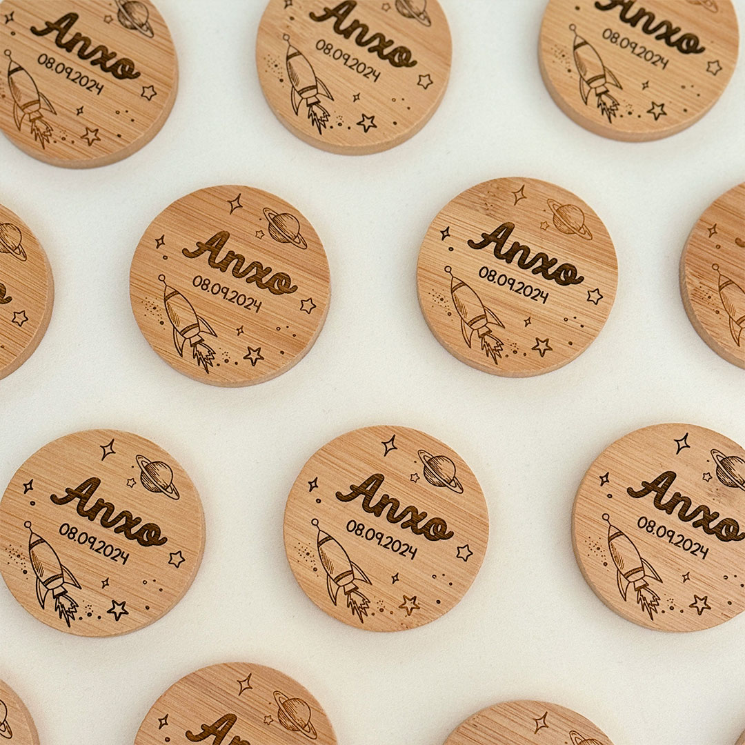 Abridor en madera de bambú con imán de 6cm de diámetro aprox.