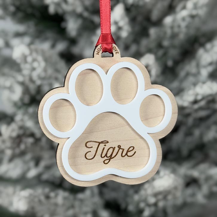 Adorno de Navidad personalizado con la huella de tu mascota, porque sabemos que son uno más de la familia y no pueden faltar en la decoración de tu árbol.