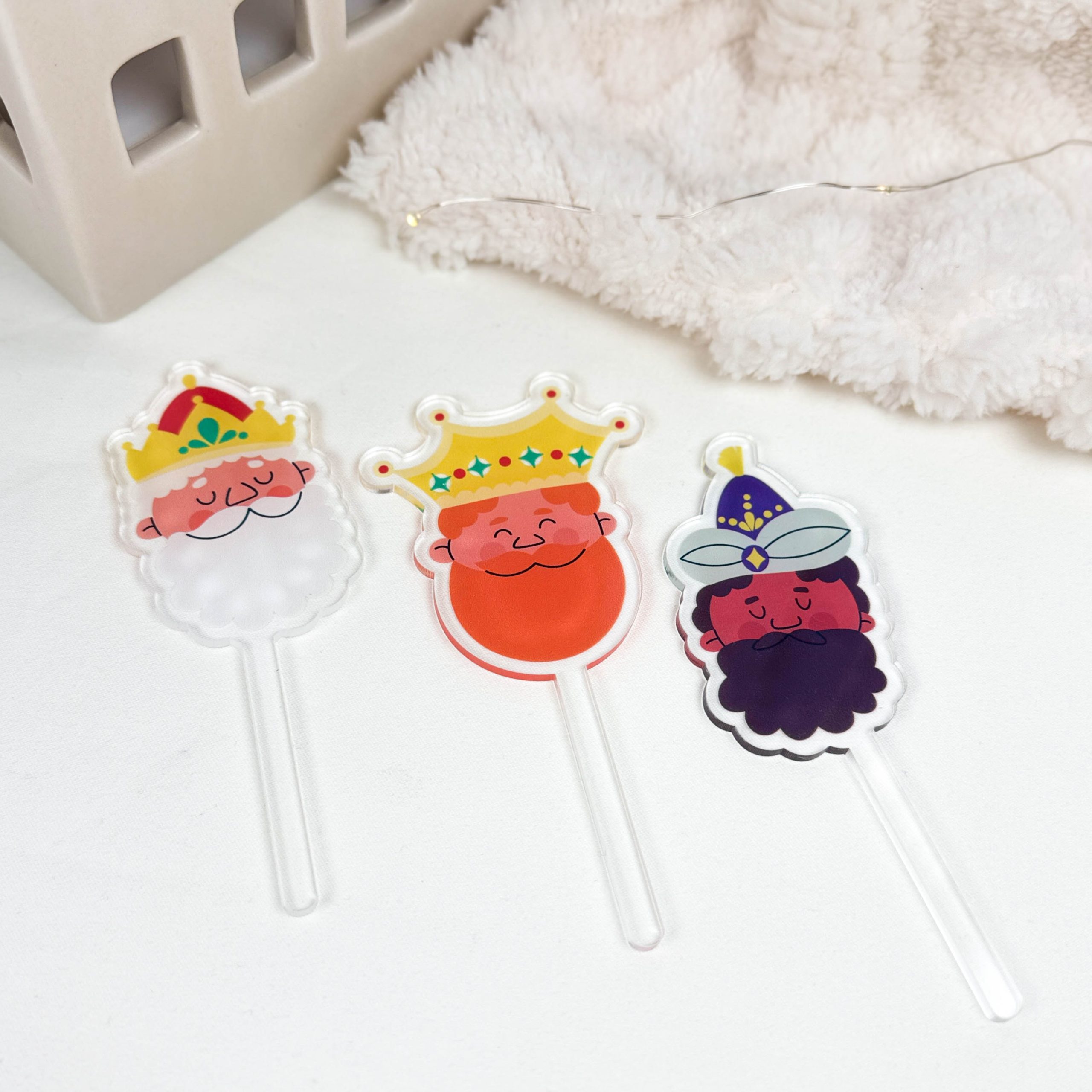 Cake topper de los Reyes Magos para decorar el tradicional roscón de reyes de una manera original. Los más peques de la casa seguro que disfrutarán colocándolos.