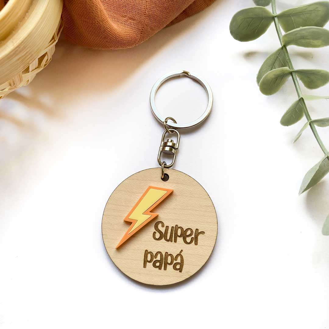 Llavero de madera personalizado ideal para regalar en el Día del Padre. Si en casa tienes a un Super Papá… ¡Díselo! Este llavero seguro que es perfecto para él. Un pequeño detalle con mucho significado. Ideal para esos recién estrenados papás, para padres experimentados, para los abuelos… Seguro que se emocionarán y los sorprenderás.